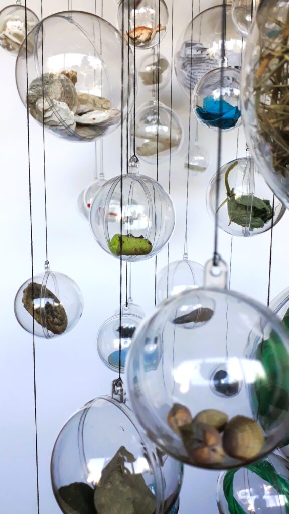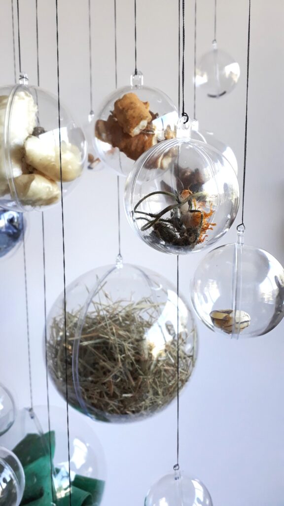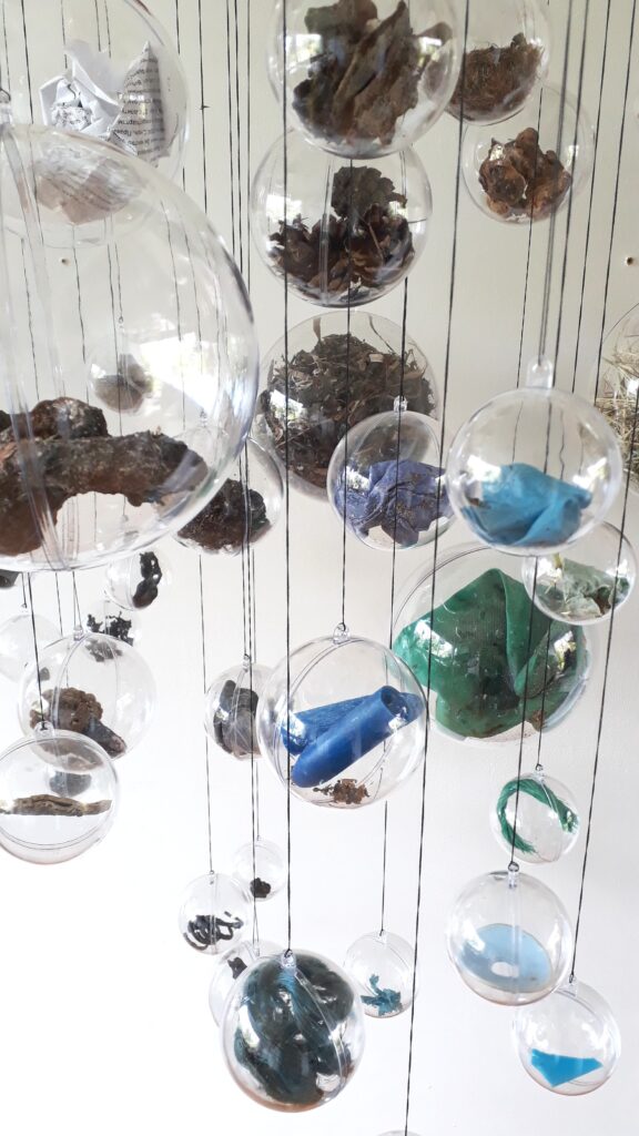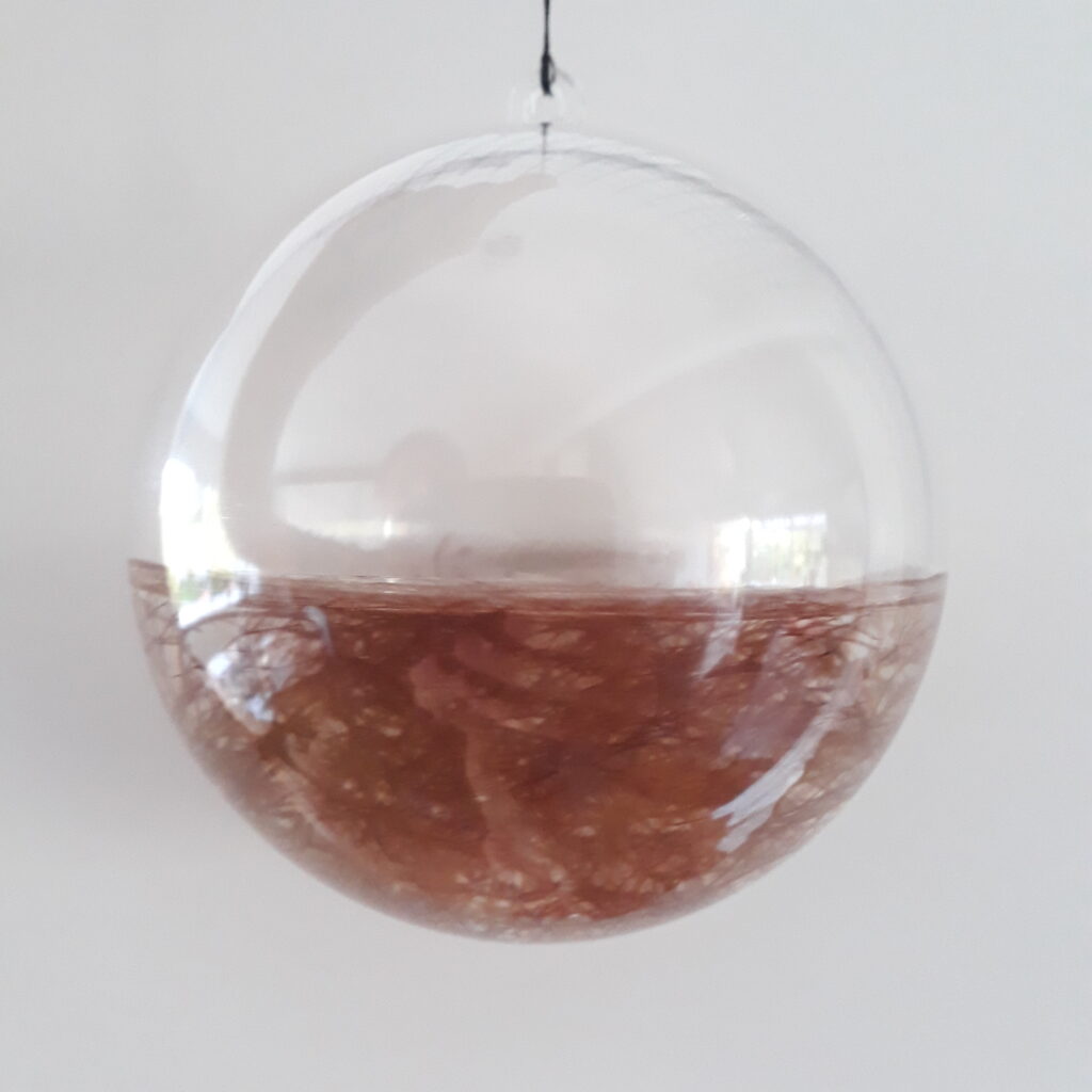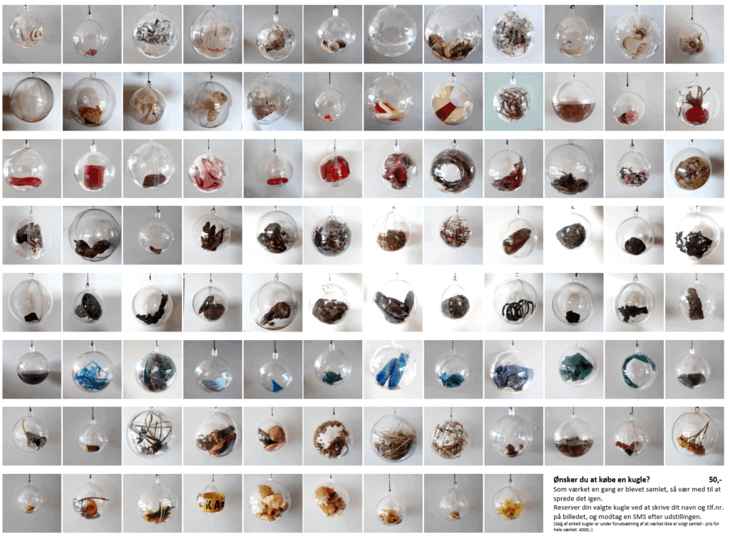 Omdrejningspunktet værket er fortællingen om menneskets dobbelte natur – som et sansende væsen og samtidig en kulturentitet – en skaber. Værket beskæftiger sig med registrering af genstande fundet omkring broområdet, samt en efterfølgende genoplivelse som kunstværk i en ny kontekst, da kuglerne sælges enkeltvis så genstandene får nyt liv i nye omgivelser. Genstandene i kuglerne fungerer som beviser fra et gerningssted, bliver spor efter menneskelig aktivitet, af byggeriet, af naturen.