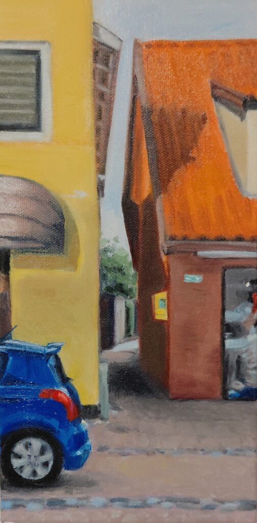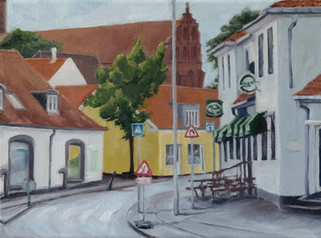 Billeder malet i sommeren 2025. Det er et forsøg på at finde motiver i min egen hverdag, i min egen by Slangerup – en den helt igennem almindelige danske provinsby, som Slangerup nu engang er